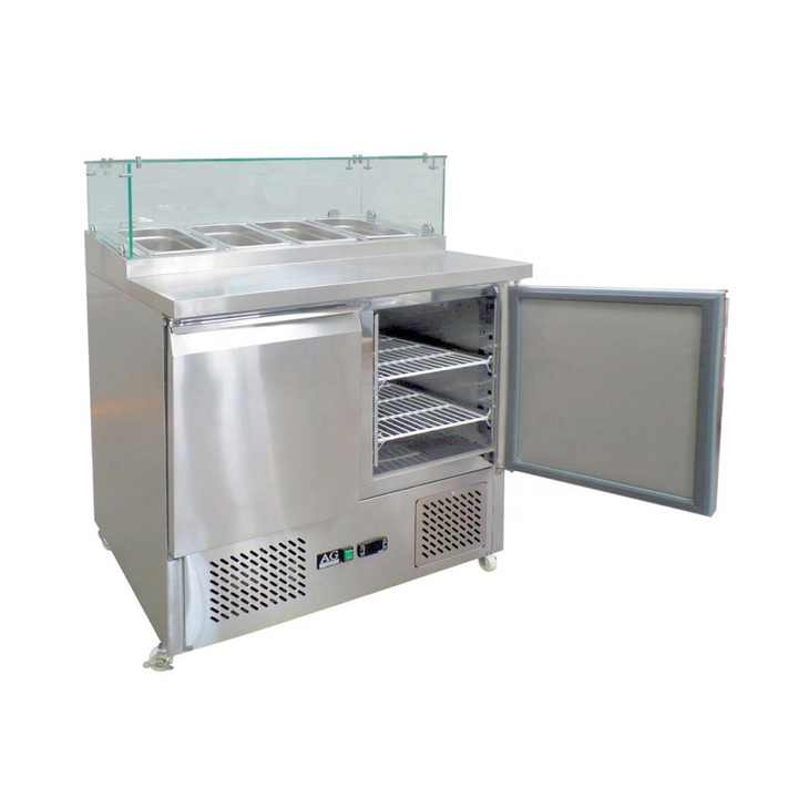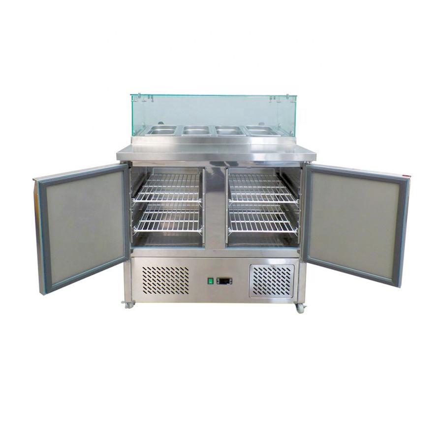 Couvercle en verre Pizza Table de travail Salade Réfrigérateur Saladette