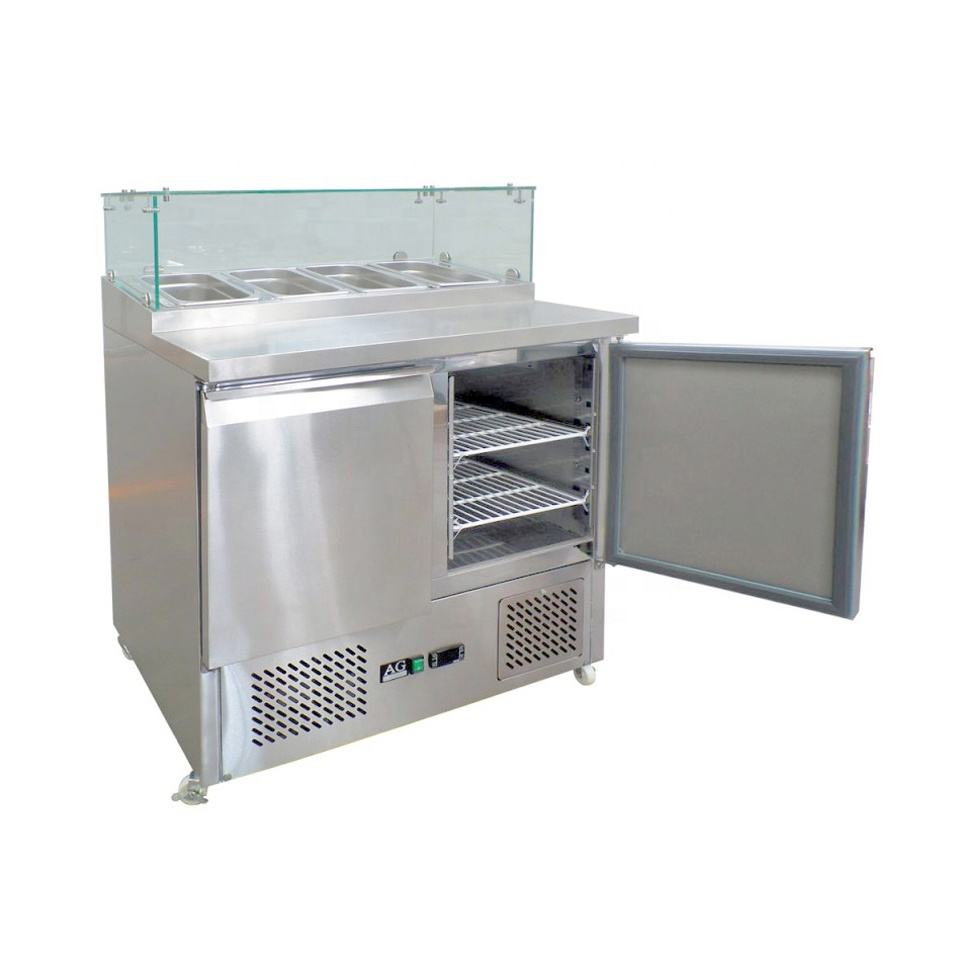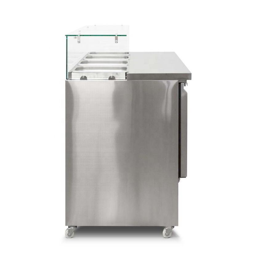 Nom:Couvercle en verre Pizza Table de travail Salade Réfrigérateur Saladette