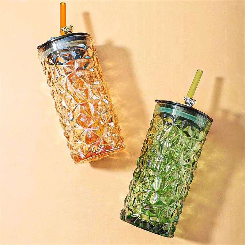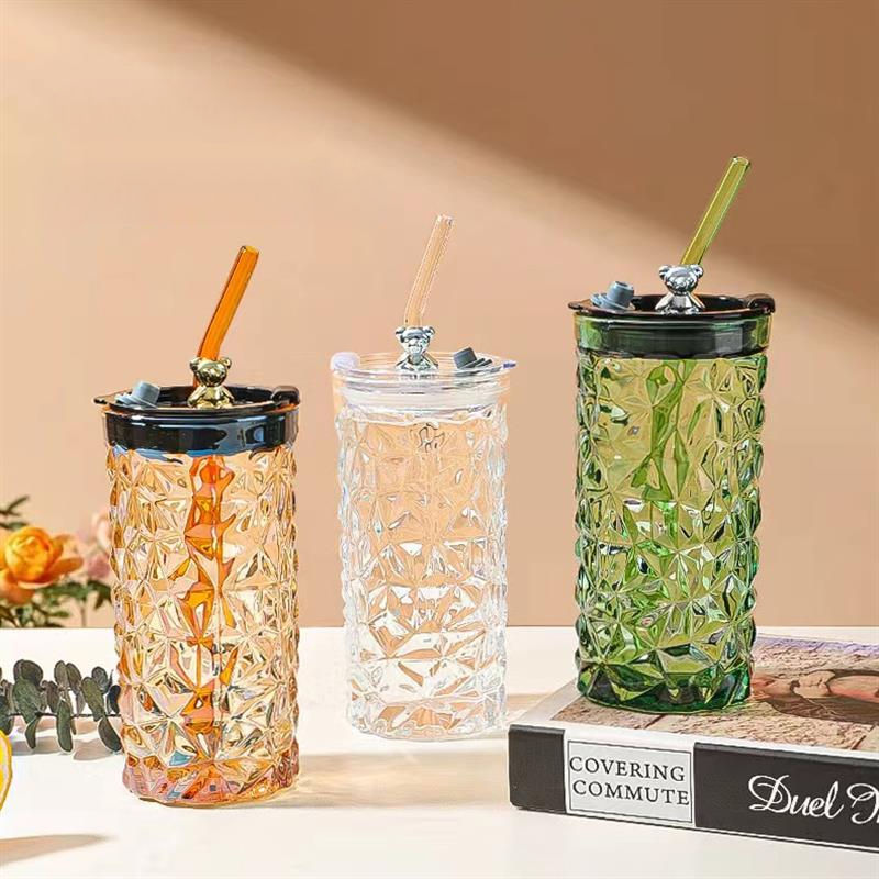 Gobelet en verre transparent avec couvercle et paille pour café, thé au lait, eau – Vaisselle et accessoires de boisson