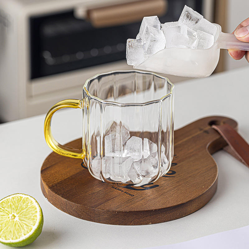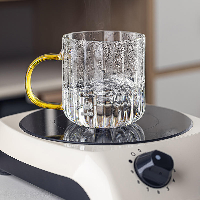 Tasse en verre avec poignée, résistante à la chaleur, texture martelée, compatible micro-ondes, pour thé, lait, eau, utilisation en fête, cadeau personnel