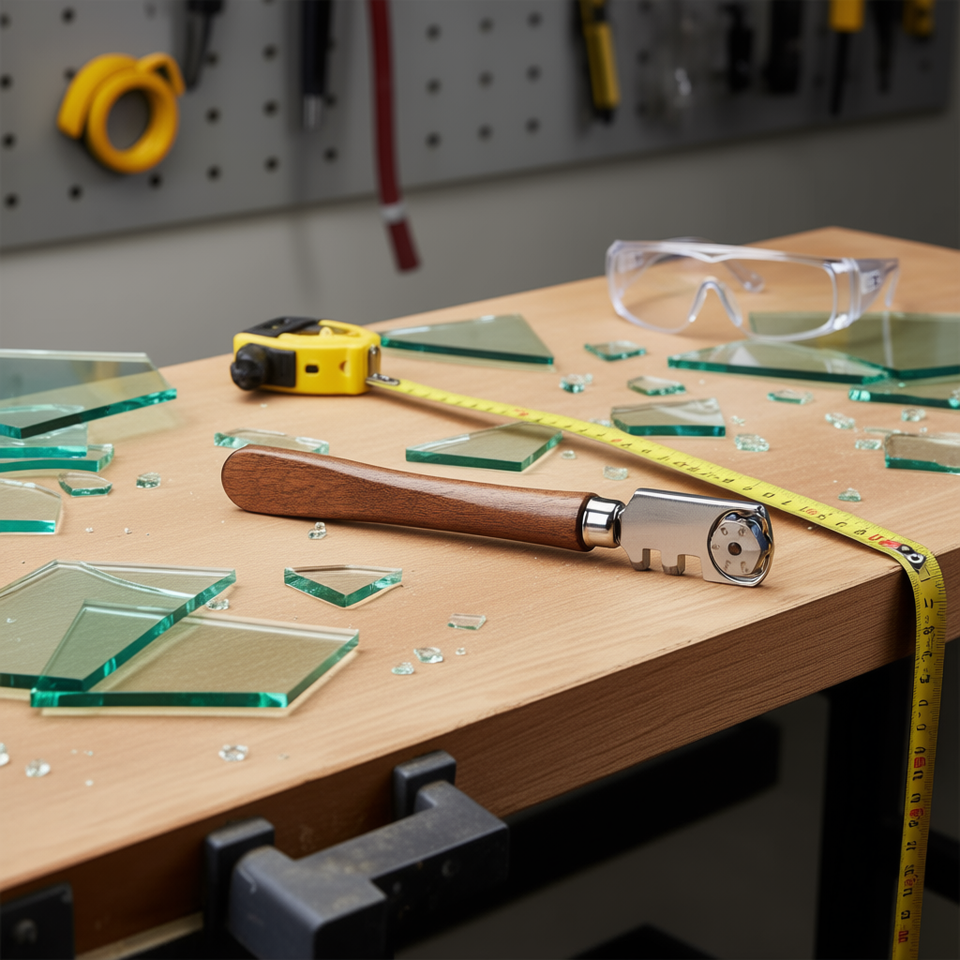 Coupe-verre avec manche en bois et roue réglable pour une coupe précise