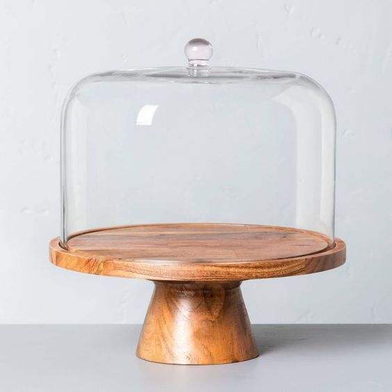 Dôme en verre support pour gâteau au fromage support pour gâteau sueurs meilleure vente dessus de table avec base en bois de haute qualité