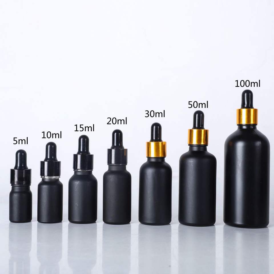 Flacons compte-gouttes en verre pour huiles essentielles et cosmétiques – Meilleures ventes – 30 ml, 50 ml, 100 ml – Noir mat dépoli – Parfum, huile essentielle