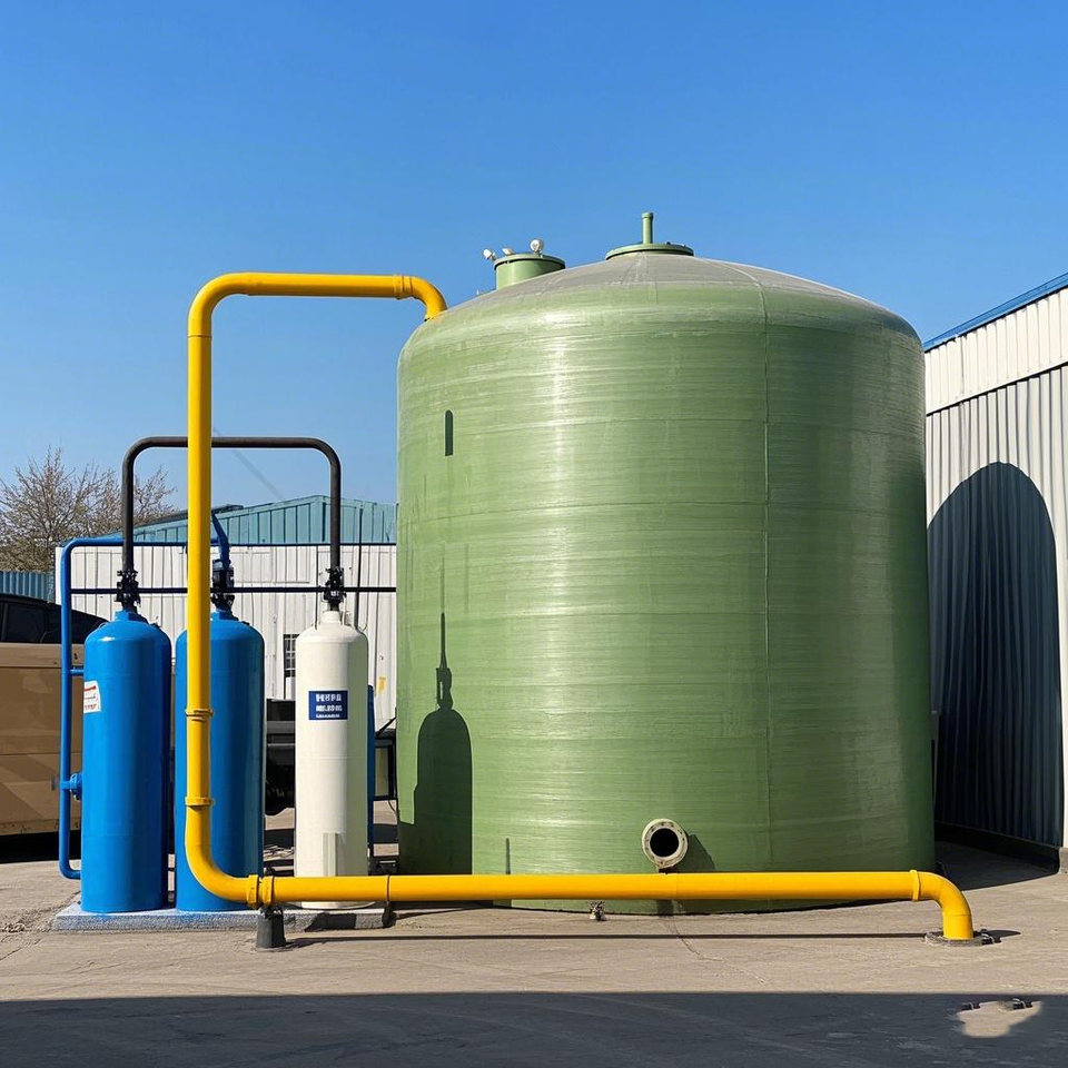 Réservoir de stockage horizontal en fibre de verre pour l'eau potable et l'acide chlorhydrique, utilisation agricole, productivité de 3000 L/heure, garantie de plus de 5 ans