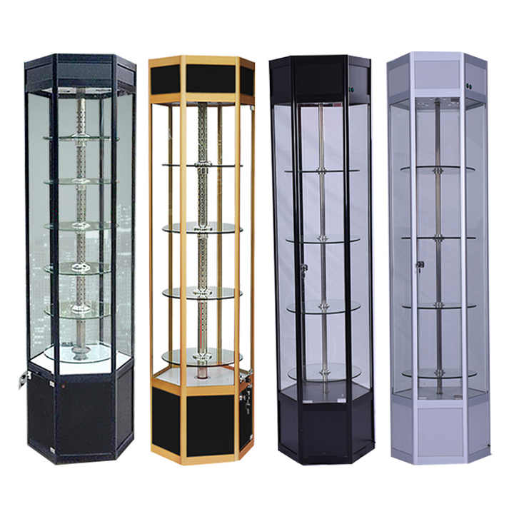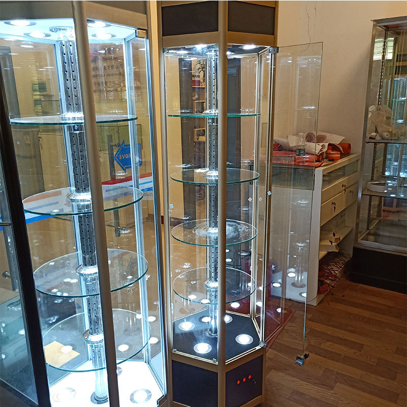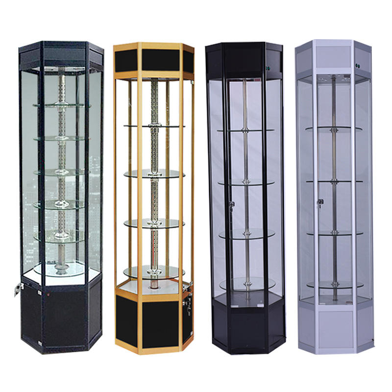 Vitrine rotative électrique en verre pour meubles, vitrine hexagonale de haute qualité, produit agréable avec éclairage LED pour bijoux