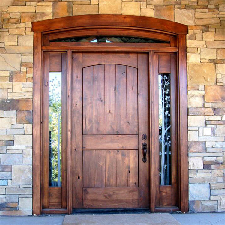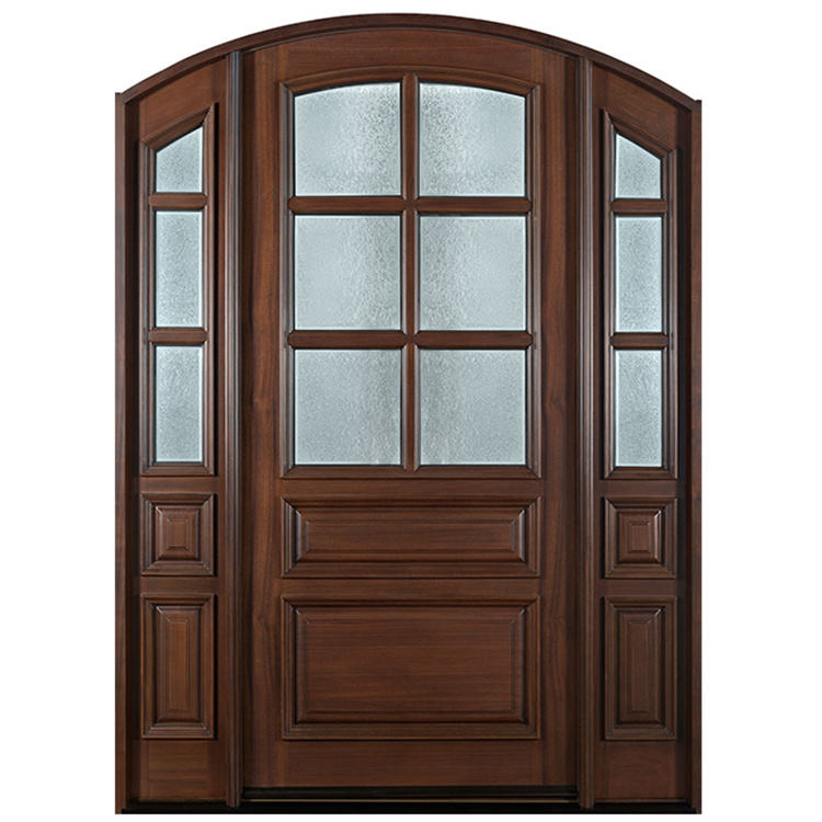 Porte d'entrée en bois massif à insert en verre-Panneaux en verre trempé, éclairage amélioré, éclaircit les foyers et les entrées