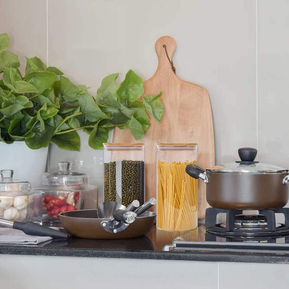 Grand bocal en verre transparent de 1000 ml, peu encombrant et sûr pour les aliments.