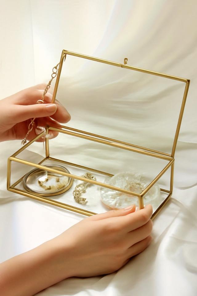 Boîte à bijoux en verre couleur or une pièce de déclaration luxueuse qui apporte glamour, grâce et éclat doré à votre collection de bijoux