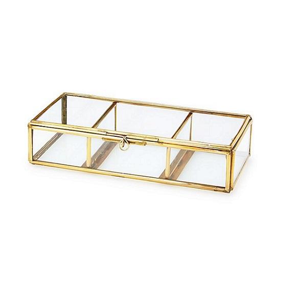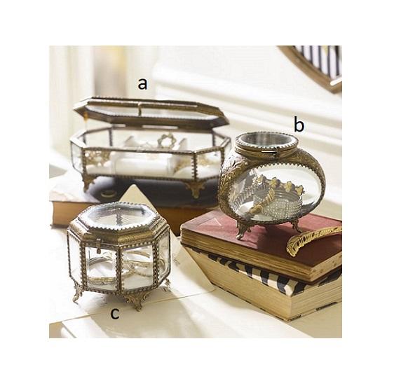 Boîte à bijoux en verre massif, boîte avec cadre métallique décoratif