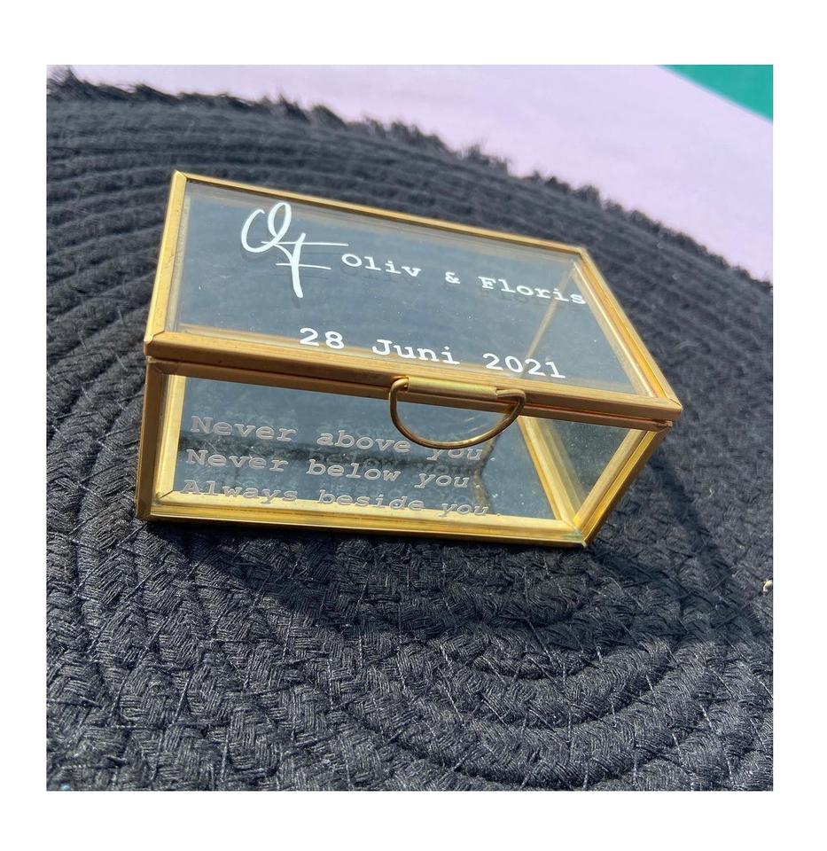 Boîte à bijoux en verre avec finition dorée, fabriquée avec précision pour offrir une expérience d'affichage haut de gamme et premium.