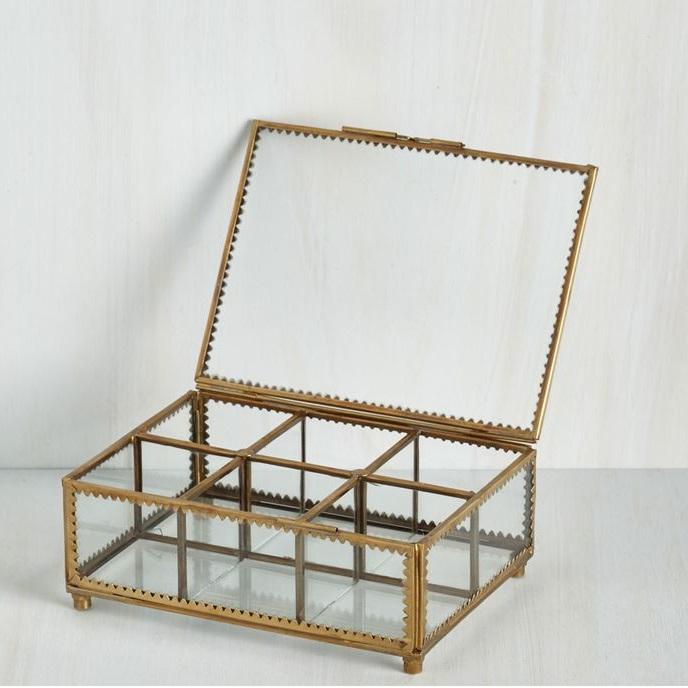 Boîte de rangement pour bijoux en verre magnifiquement fabriquée à la main en laiton et verre de haute qualité pour la décoration de la maison et du bureau