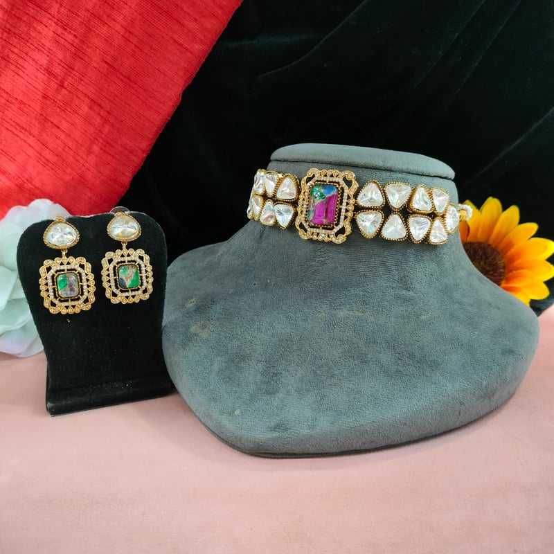 Glass Kundan, MoissaniteMain Stone