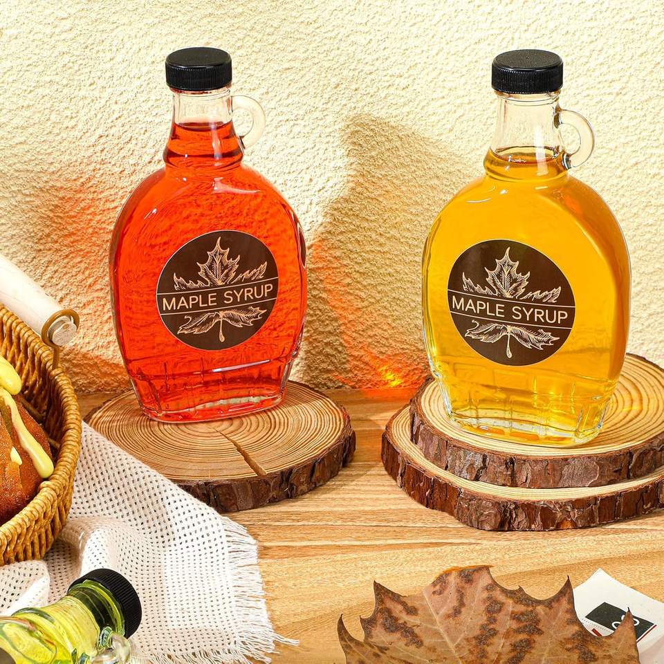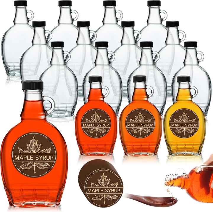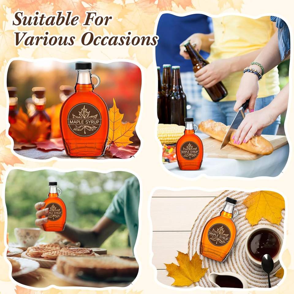 Bouteilles de sirop d'érable en verre Bouteilles en verre réutilisables transparentes de 5 oz Bocaux de sirop d'érable Conteneur pour cadeau de jus de lait avec couvercles Poignée à boucle