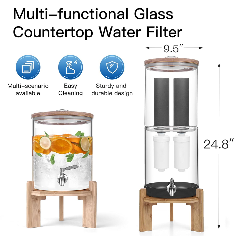 Système de filtration d'eau par gravité en verre, capacité de 14 L, distributeur d'eau de comptoir, élimine le chlore résiduel pour la maison et le camping