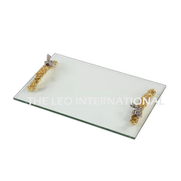 Plateau de service alimentaire rectangulaire en verre avec poignées latérales, style créatif, plateau décoratif de luxe pour la cuisine