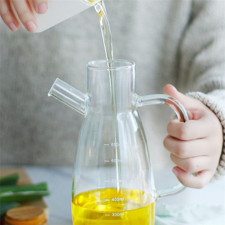 Bouteille Distributrice d'Huile en Verre avec Poignée et Échelle de Mesure, Cruet à Huile et Vinaigre Sans BPA pour la Cuisine
