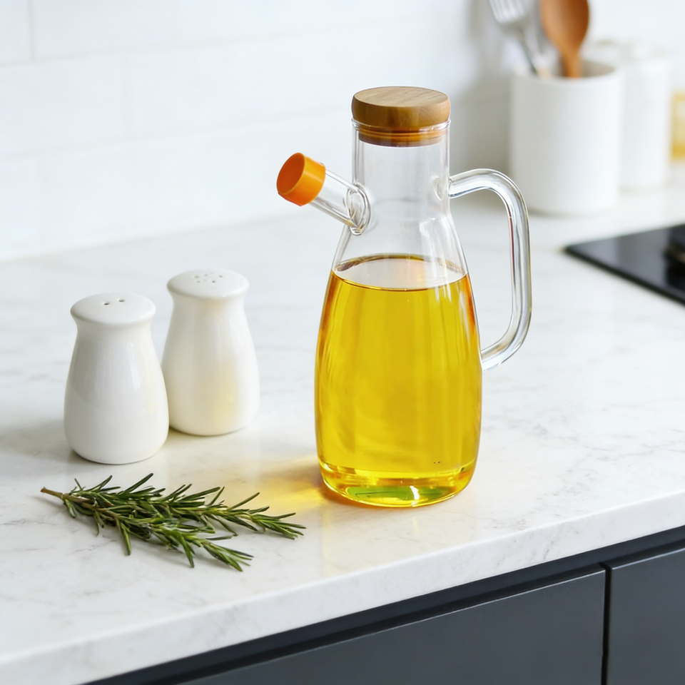 Bouteille d'huile en verre