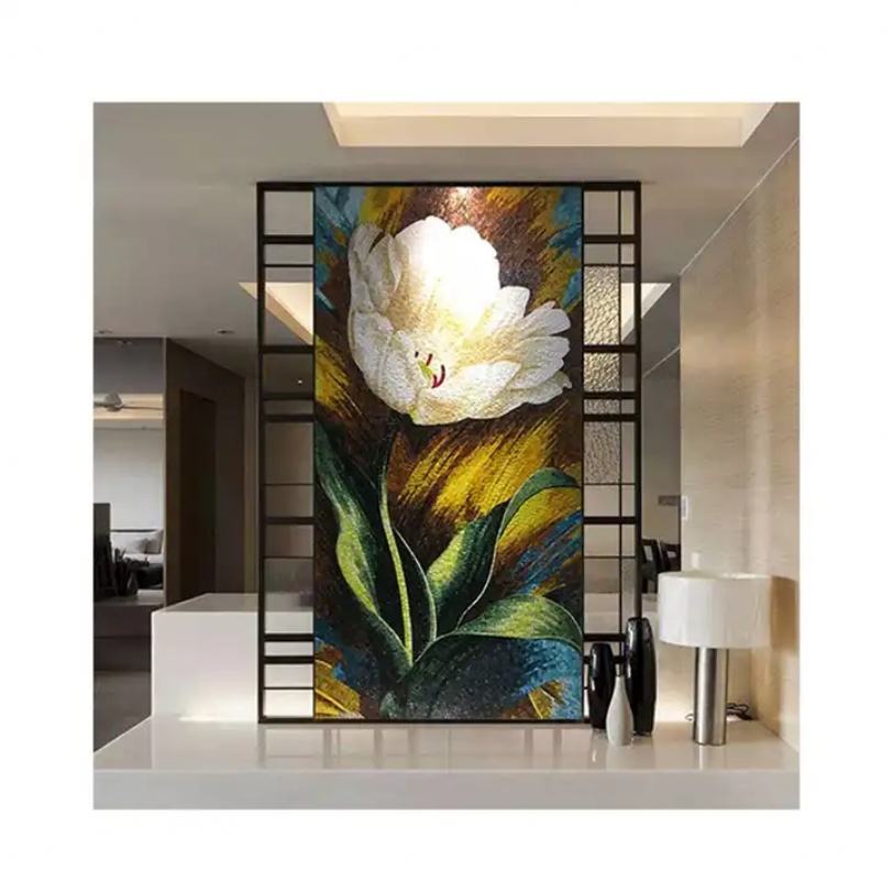 Mosaïque décorative en verre à motifs floraux découpés, art mural en carreaux