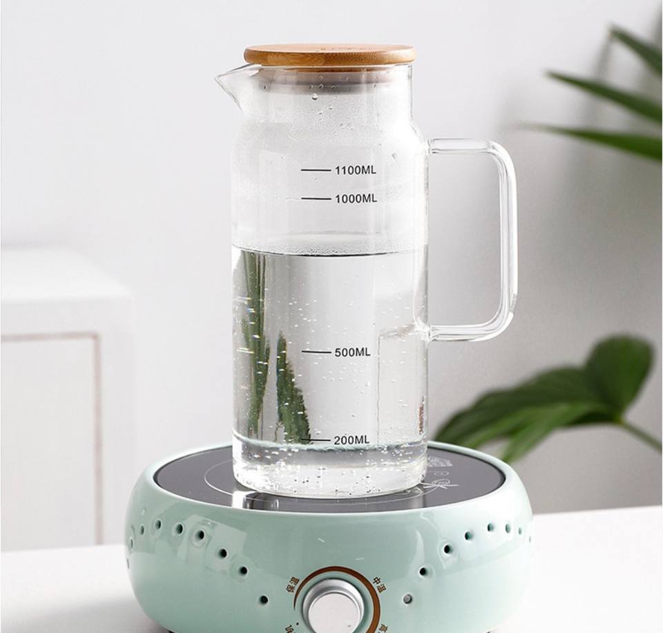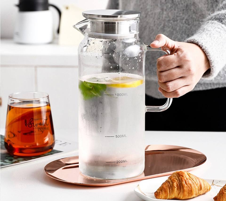 Pichet en verre avec couvercle Carafe à eau de haute qualité avec des lignes d'échelle précises pour l'eau chaude/froide, le thé glacé et d'autres boissons