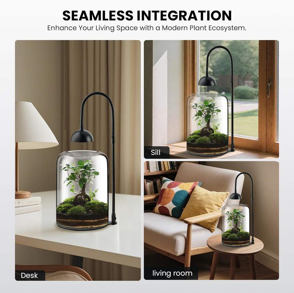 Terrarium en verre pour plantes avec ventilation LED, grand terrarium pour plantes avec ventilation pour plantes succulentes, 8,7 pouces de haut, décoration d'intérieur