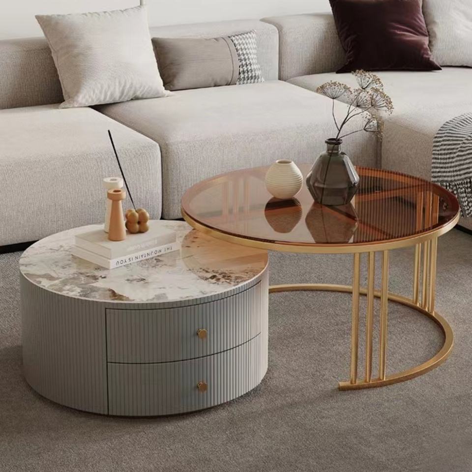 Table basse en verre et roche, grande table combinée pour salon, style moderne et minimaliste, pour petit appartement, réglable en hauteur