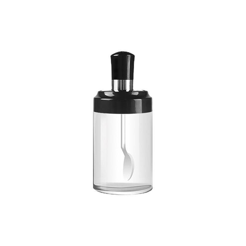 Récipient à épices en verre avec couvercle et cuillère, conçu pour le stockage du sel, du poivre, des herbes et des assaisonnements dans une cuisine moderne