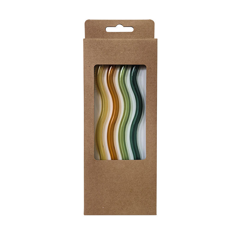 Ensemble de pailles en verre motif de vague pailles colorées combinaison personnalisée accessoires de bar modernes jetables certifiés CE CN ZHE TEUM