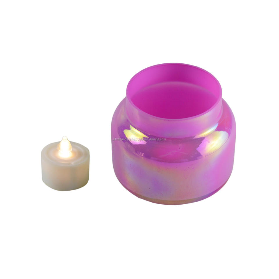 Bougeoir votif et T-Light en verre avec pots à bougies et lanternes en métal à finition peinte pour la décoration intérieure et les festivals de mariage