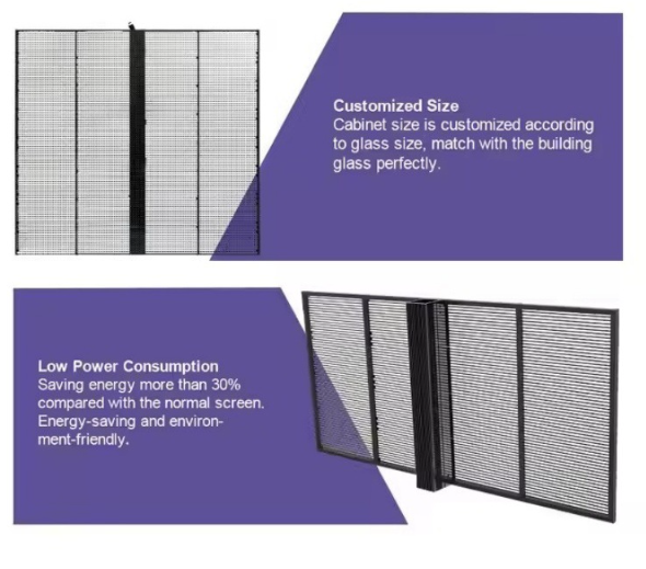 Écran LED transparent pour publicité murale en verre, grille transparente P3.91 P7.81, affichage LED transparent extérieur
