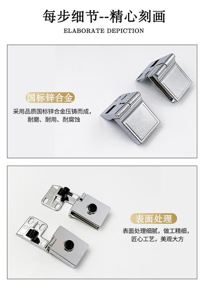 Charnière en alliage de zinc pour portes de cave à vin, trous de fixation, ouverture à 90 degrés, design moderne, installation facile pour cuisine et salon