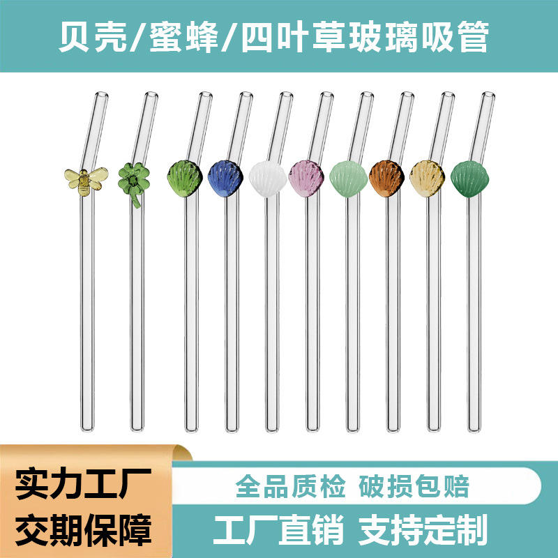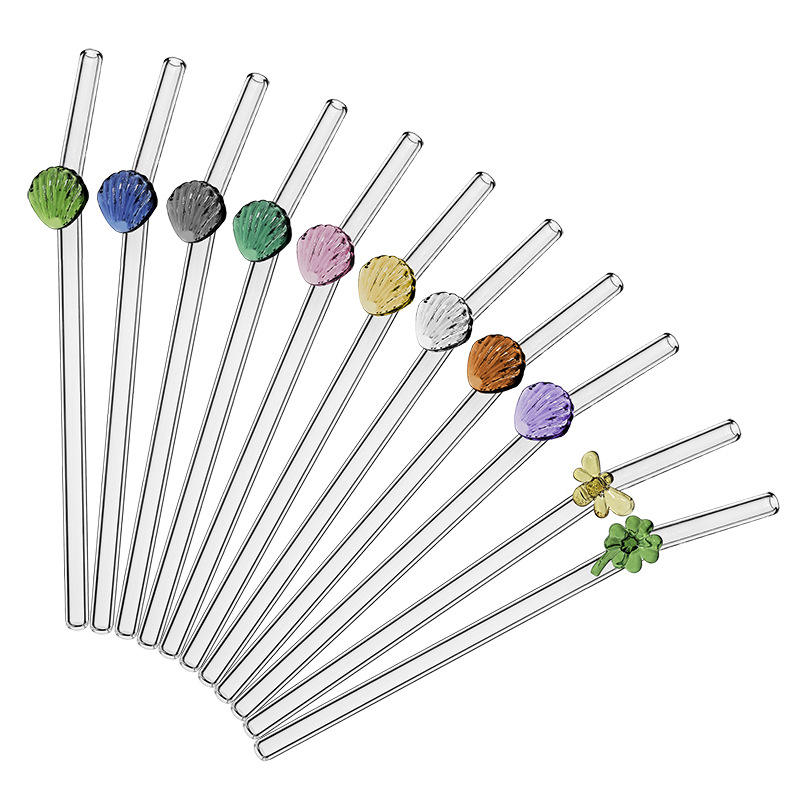 Paille de verre, en forme de coquille, adhésif trèfle d'abeille à haute teneur en borosilicate, style mignon, vente en gros au comptant,
