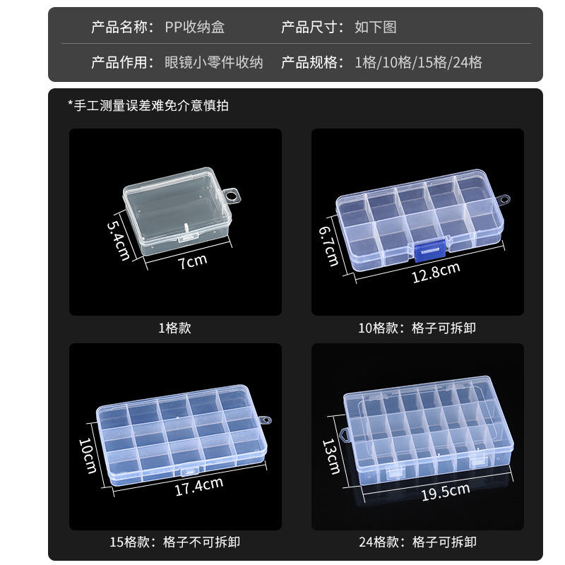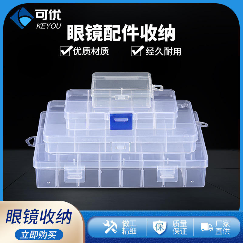 Boîte de rangement pour pièces de lunettes, transparente en PP, 10, 15, 24 compartiments avec couvercle, étui d'organisation léger pour accessoires de lunettes