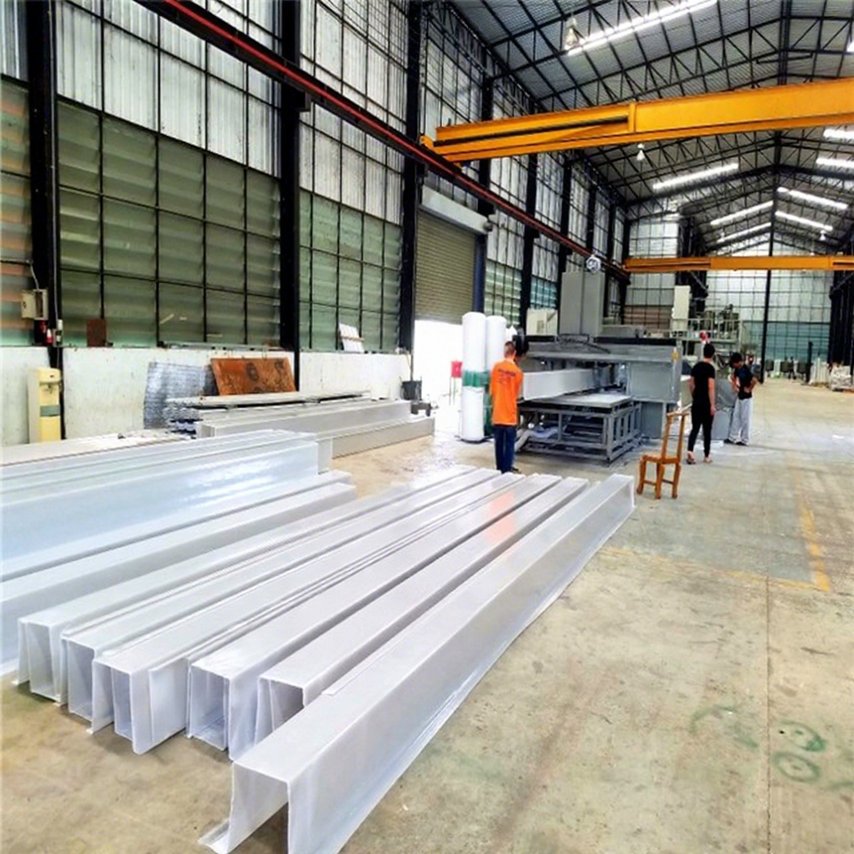 Machine de fabrication de tuiles de toiture et de canaux d'eau translucides en polymère renforcé de fibres de verre (GRP)