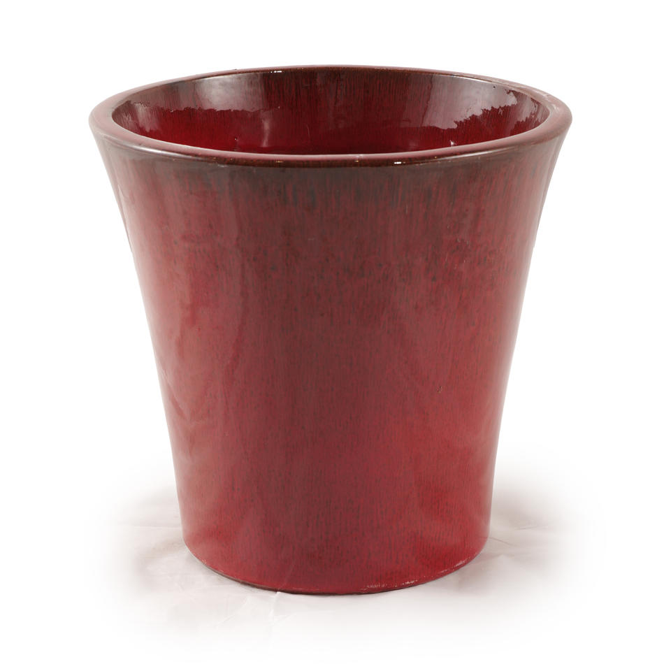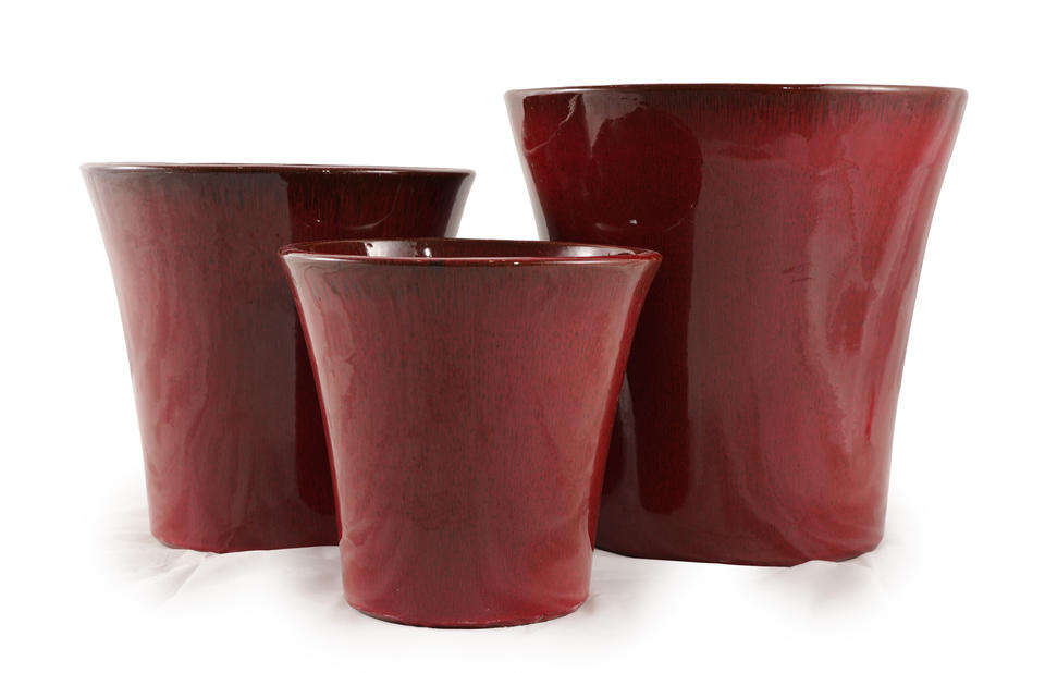 Pot de fleurs en céramique émaillée écologique et durable, rouge bordeaux brillant, design à bord évasé, pour jardin intérieur et extérieur, avec trou de drainage, pour la maison