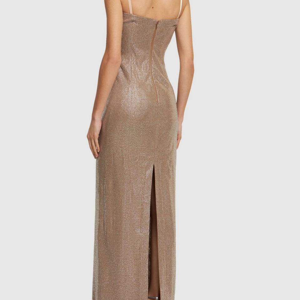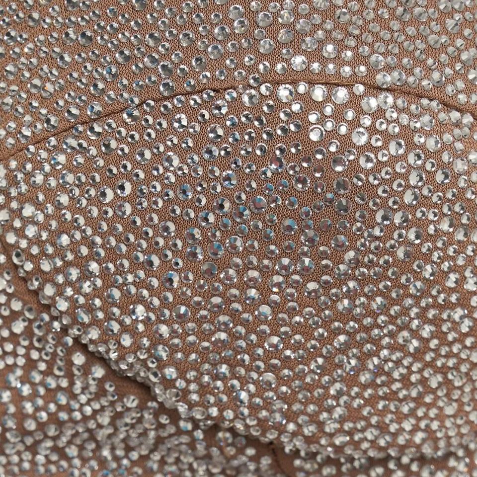 Robe de soirée longue pour femme, dos nu, sans manches, entièrement ornée de strass et de paillettes, avec superposition transparente, pour soirée et bal