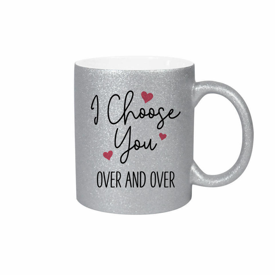 Mug en céramique pailleté argenté avec motif cœur « Je te choisis plus que tout autre » pour cadeaux