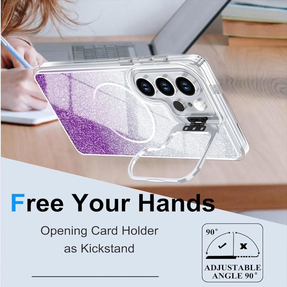 Étui magnétique dégradé pailleté avec béquille pour appareil photo pour Samsung Galaxy S26, coques de téléphone combinées TPU PC pour S26 Ultra