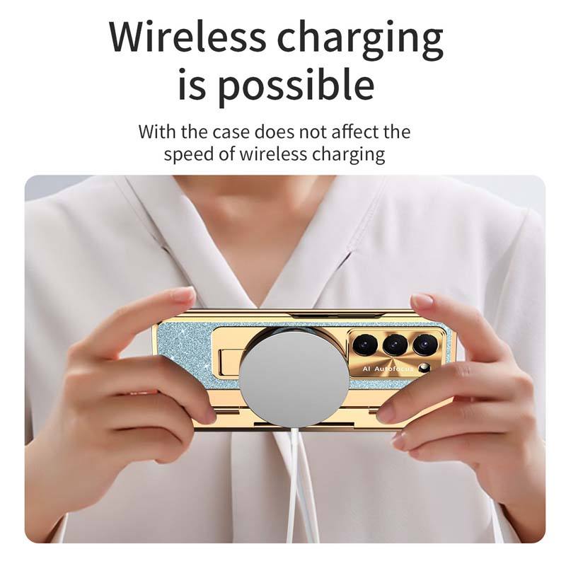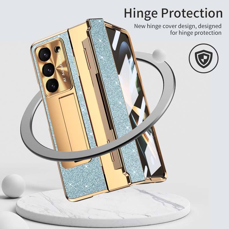 Glitter Metal CD Grain Leveling Hinge Folding Shell Lens Protection Leather Mobile Phone Case for Samsung Galaxy Z Fold 3 4 5 6
