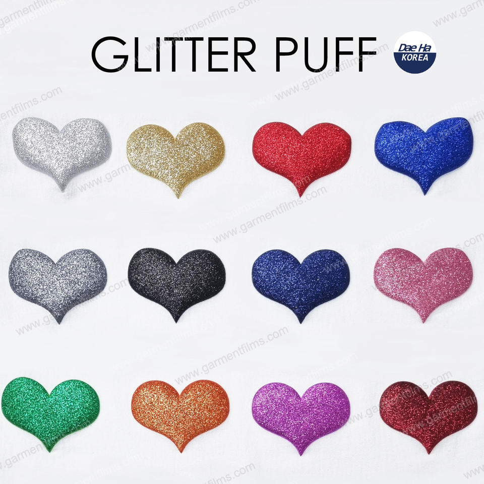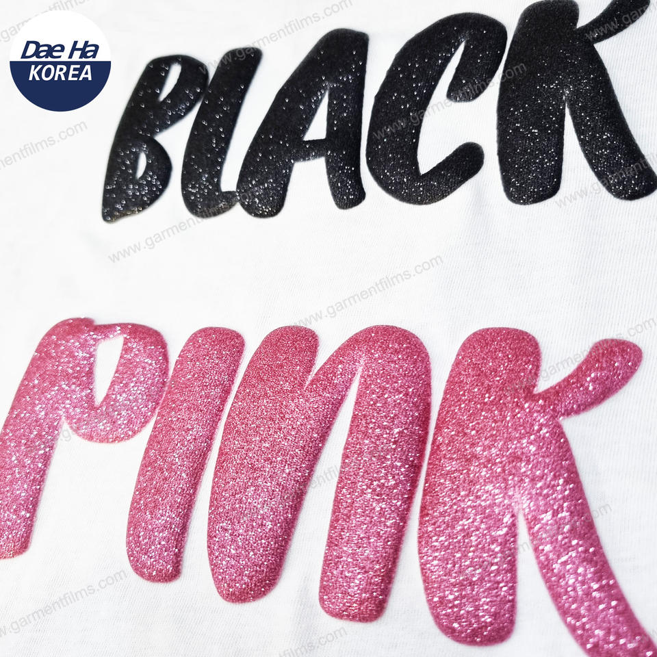 Rouleaux de vinyle de transfert de chaleur Glitter Puff HTV Dae Ha Glitter et effets 3D Conceptions volumineuses tridimensionnelles HTV fabriquées en Corée