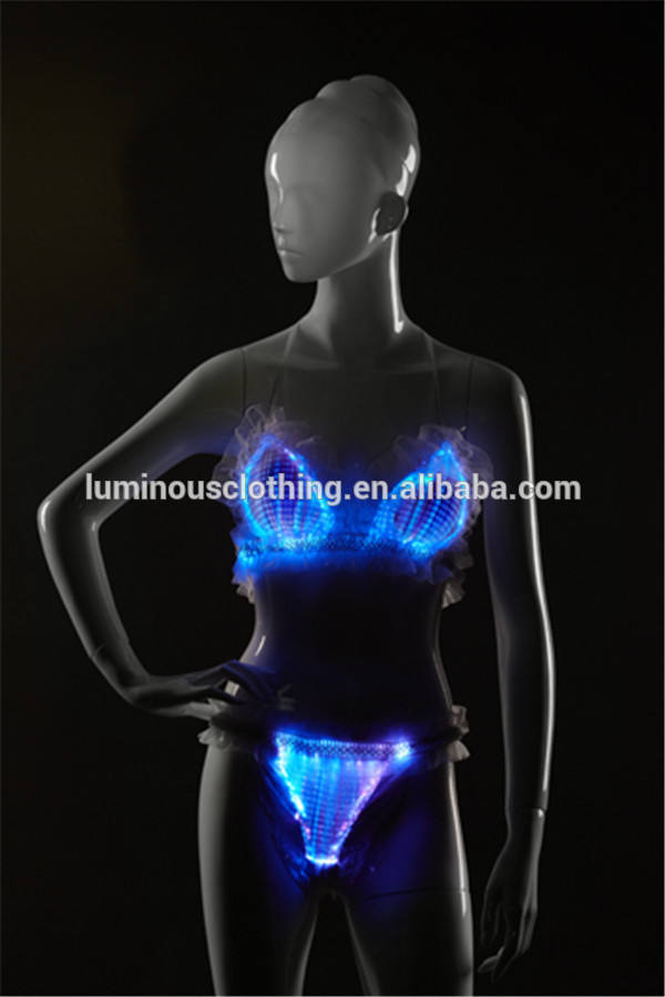 Glitter big women bra Sexy Stripper Pole dance clothes Lingerie Fiber optical Performance wear