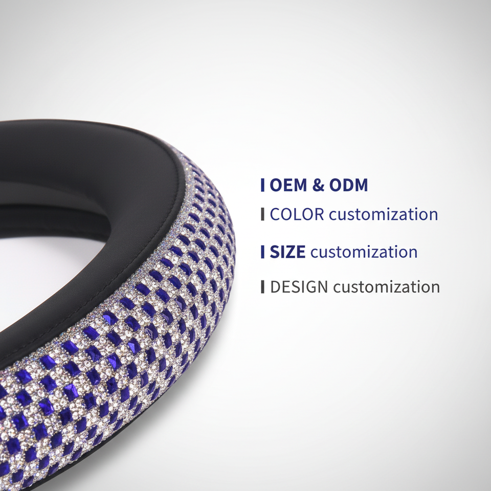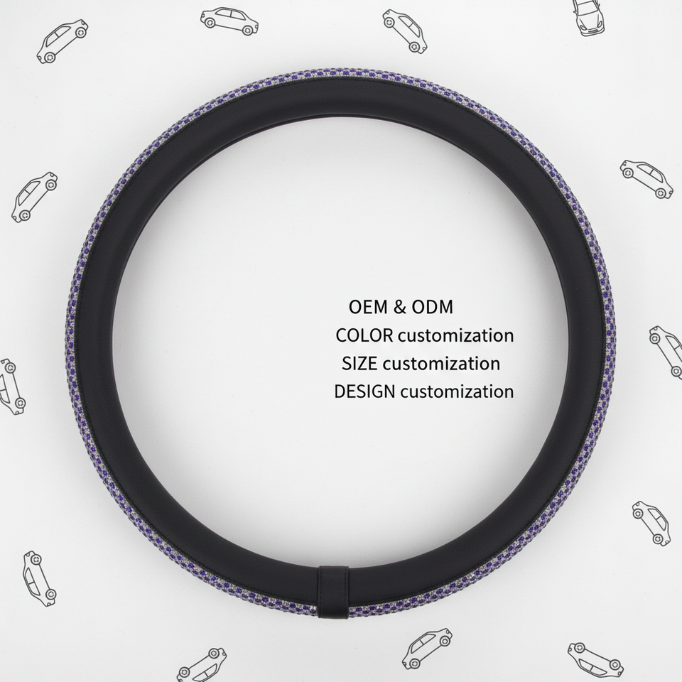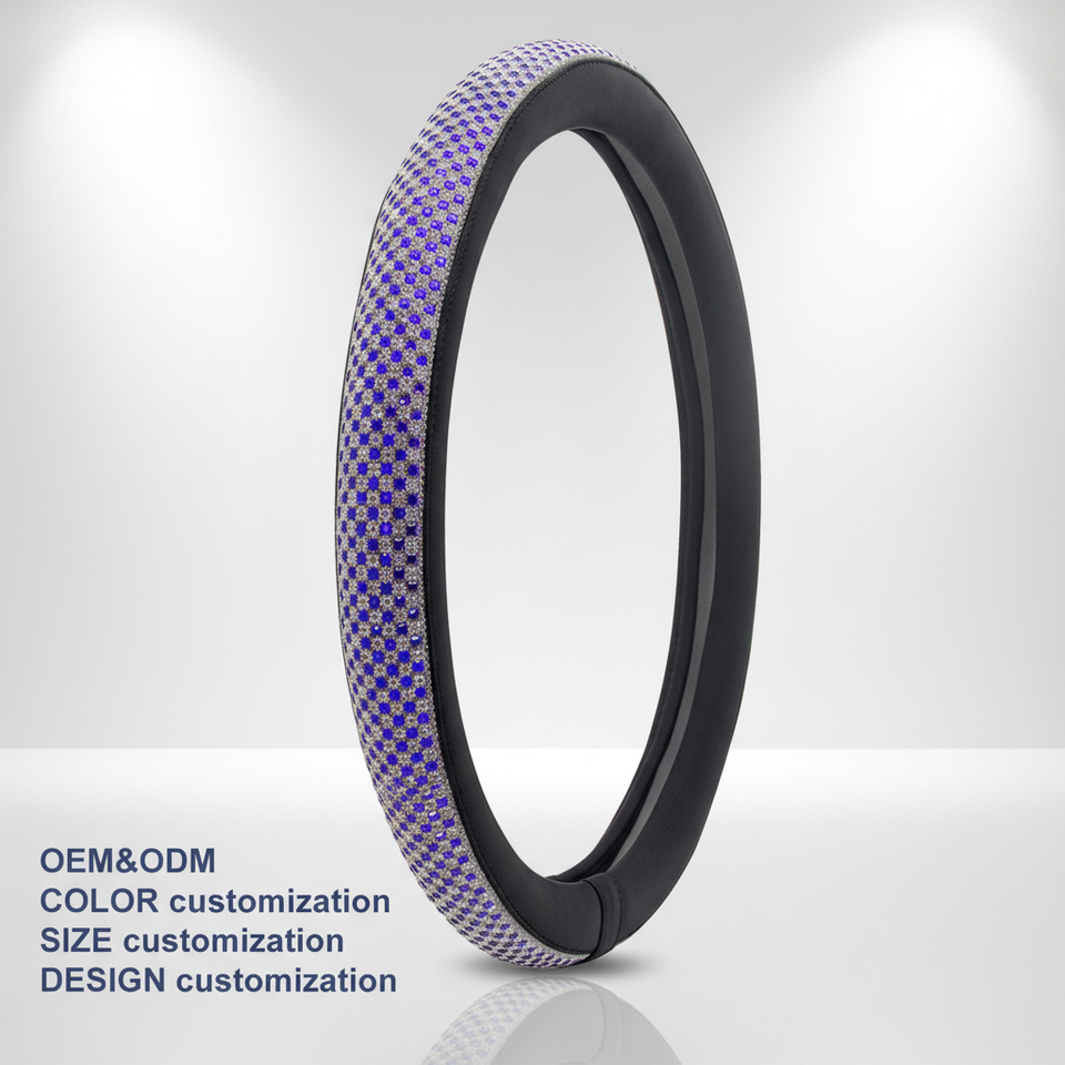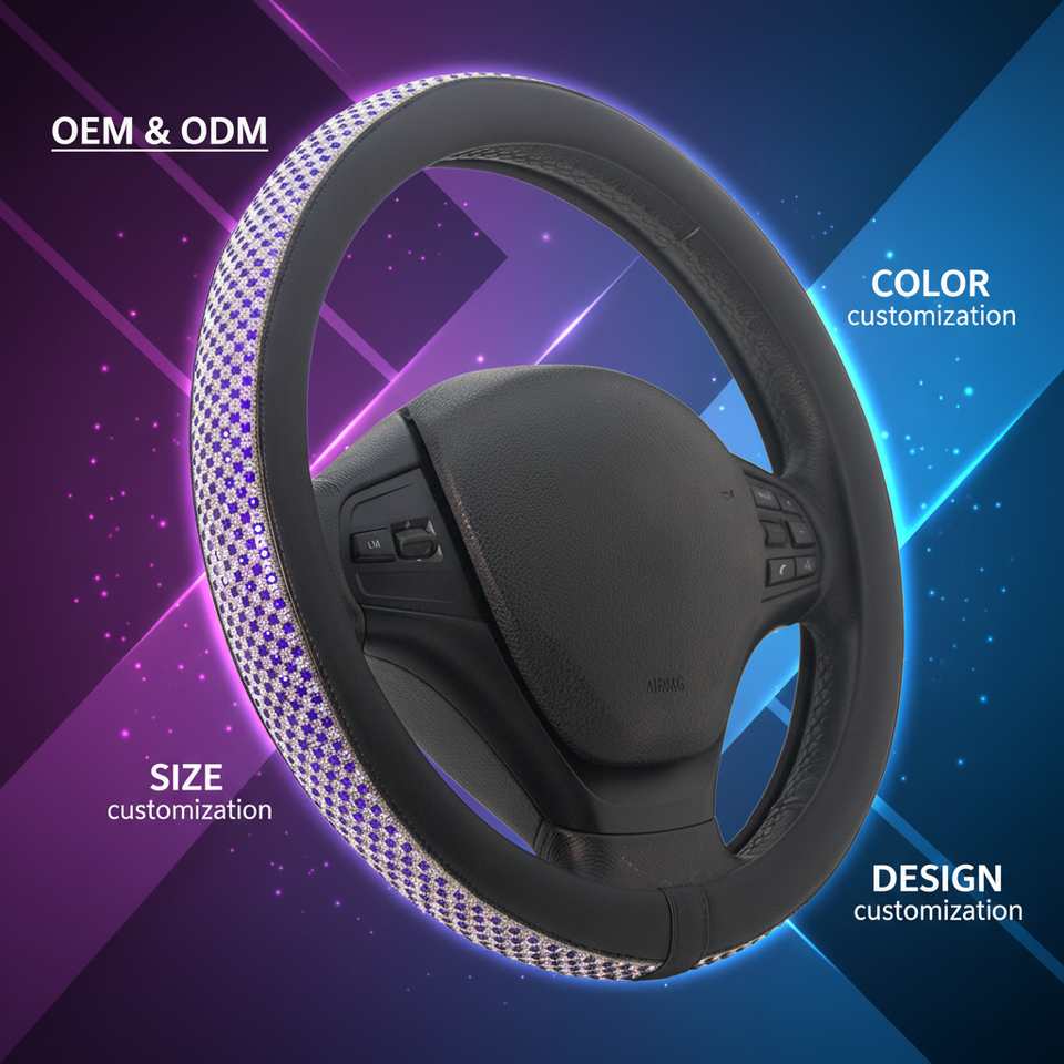 Housse de volant en cuir scintillante à trois branches avec base antidérapante pour une sécurité et un style améliorés au volant