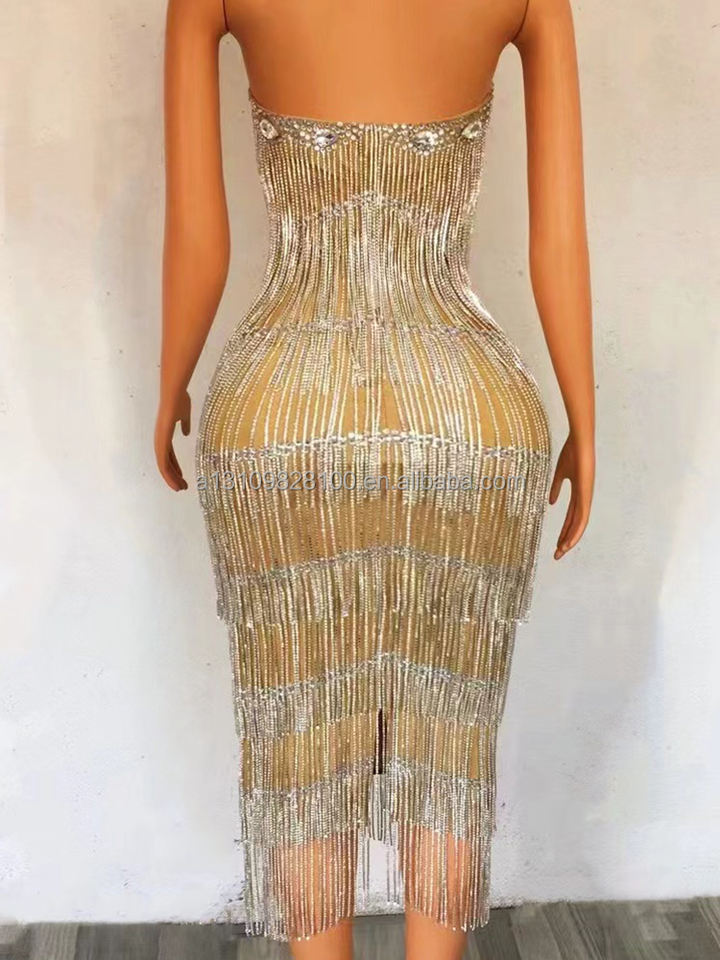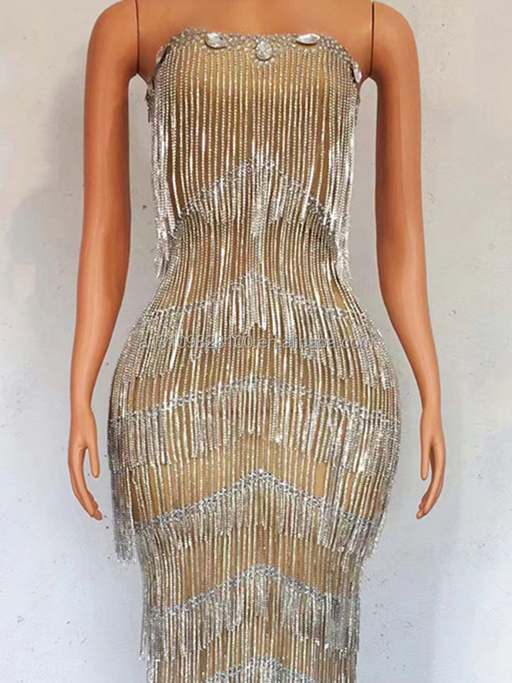 Déguisement scintillant sexy, en argent, décolleté plongeant en V, strass, extensible, bar, discothèque, chanteur, danse, compétition de danse moderne, avec pompon