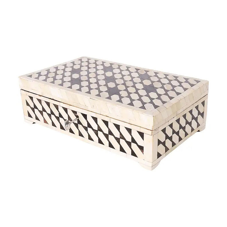 Boîte de montre ronde faite à la main artistique mondiale qualité mère perle os incrustation stockage décoratif bonne qualité boîte-cadeau quantité minimale de commande 100 pièces