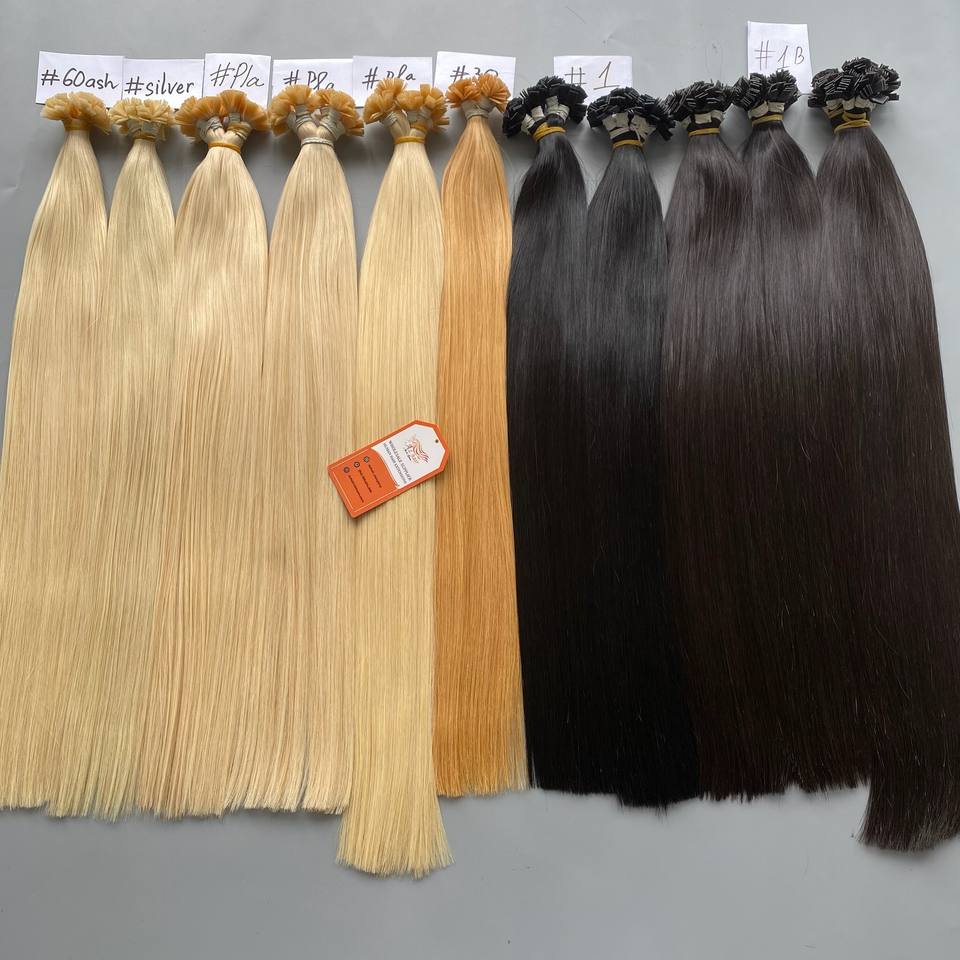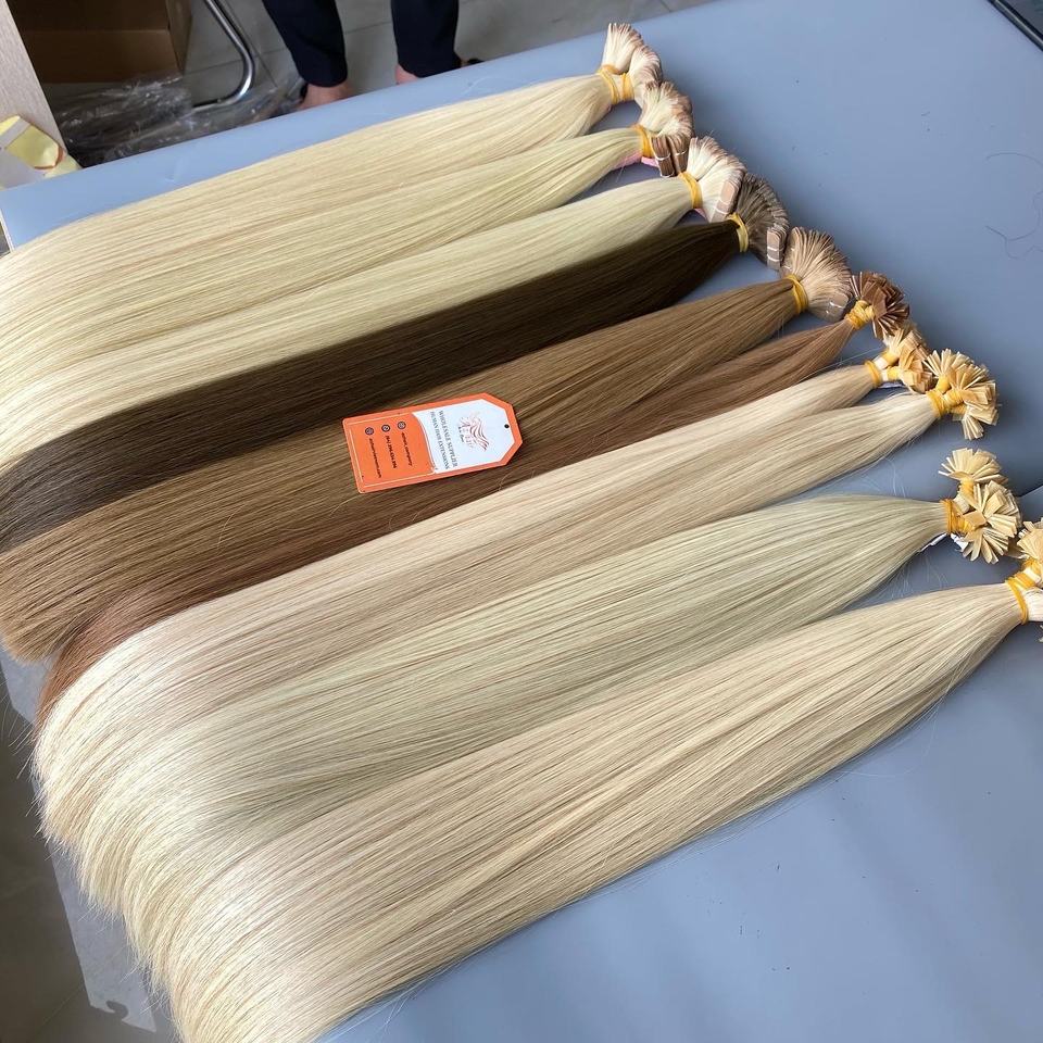 Coopération mondiale : Extensions de cheveux Remy en kératine, lisses et soyeuses, à pointe plate, prix de gros, 100-125 pièces, 100% cheveux humains vietnamiens