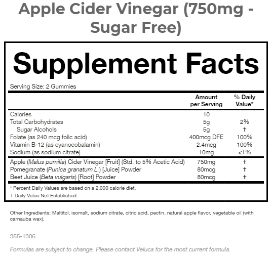 Nom du produit:Vinaigre de cidre de pomme (750mg) (Sans sucre) Gummies