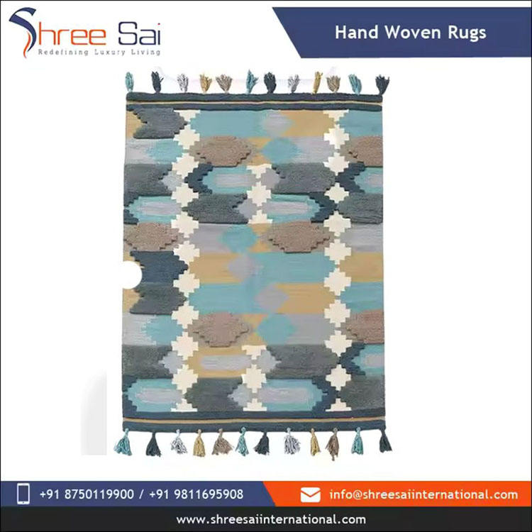 Global Inspired Cotton Dhurrie Rug Handwoven Tribal Style Flat Weave Mat Latex for Home Decor Travel-Retail Display Bulk Supply