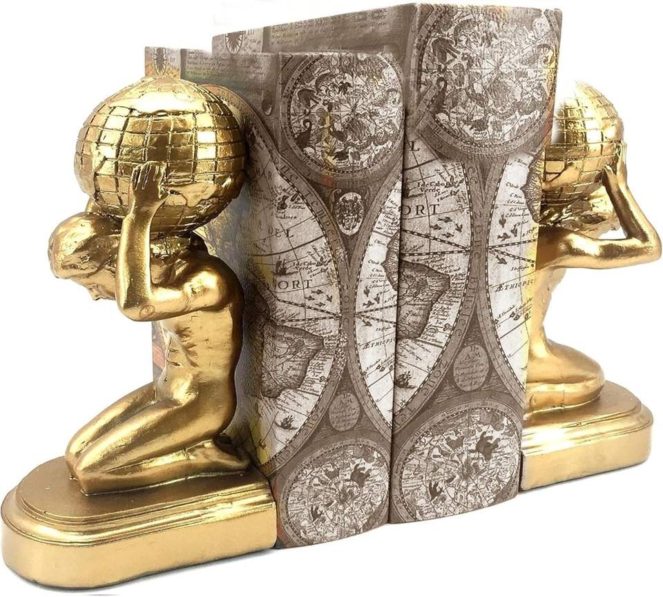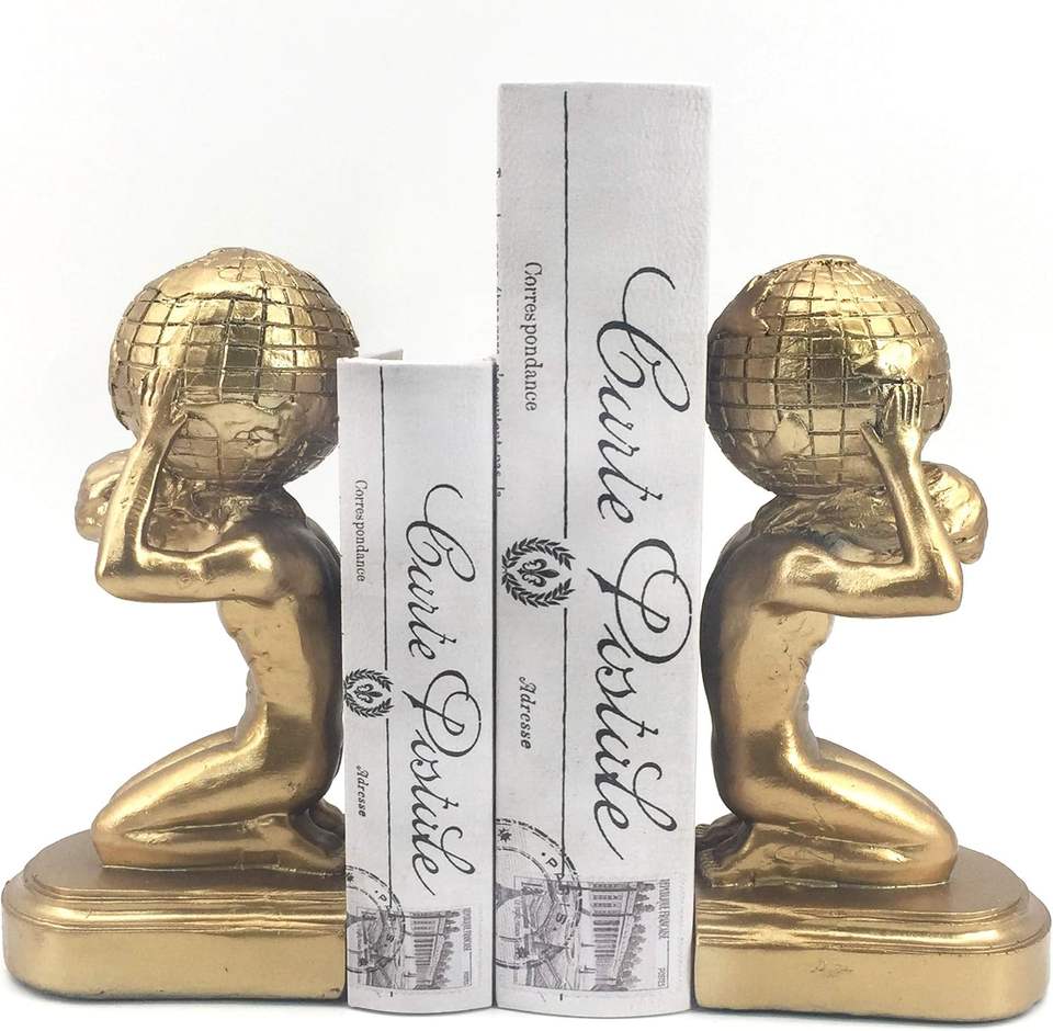 Porte-livres Globe avec design de statue grecque, style artistique européen, supports décoratifs pour livres pour bureau, étude, bibliothèque, étagère