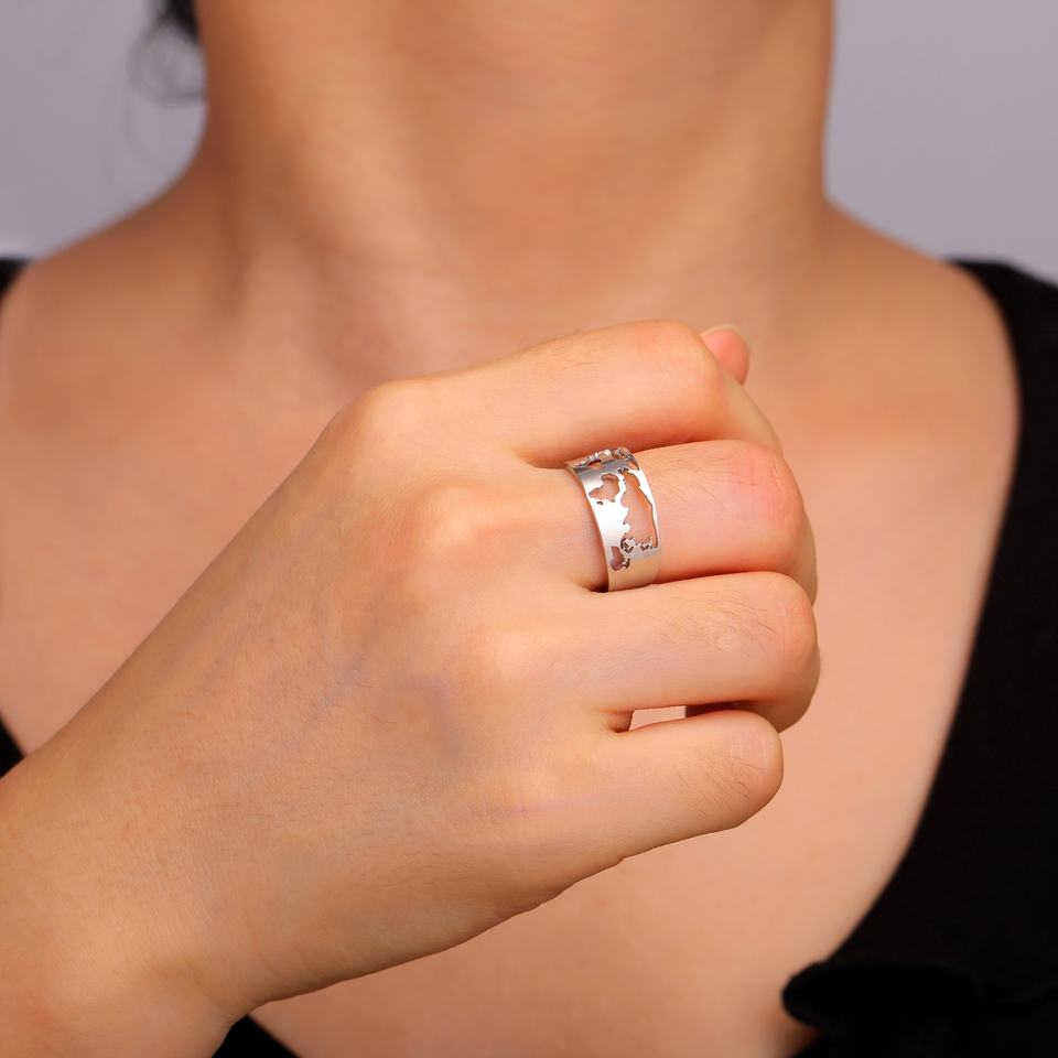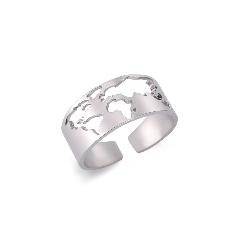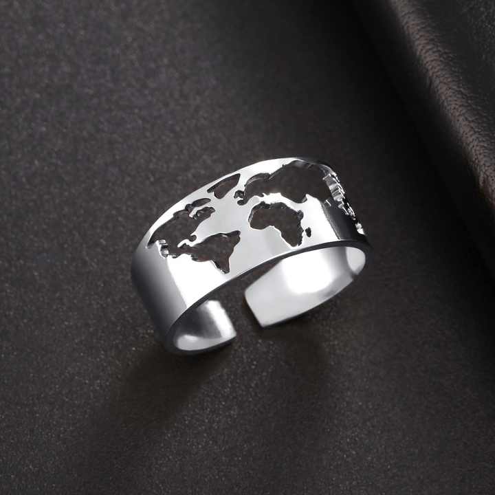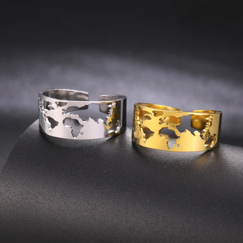 Globe Carte du Monde Anneau Ouvert Mode Réglable Voyageur Anneaux En Acier Inoxydable Bijoux Anniversaire Cadeau pour Femmes Hommes