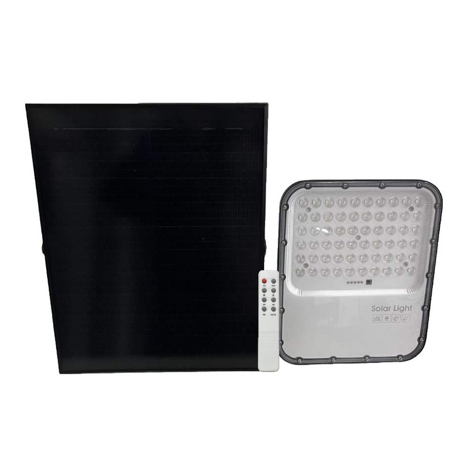 Projecteur solaire LED extérieur Gloca 200W 5000K avec panneau solaire et télécommande, corps en aluminium à montage en surface