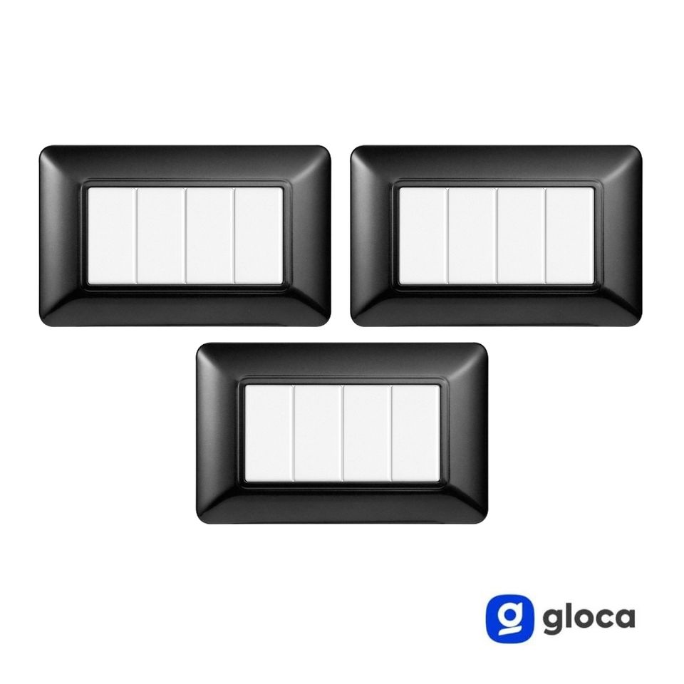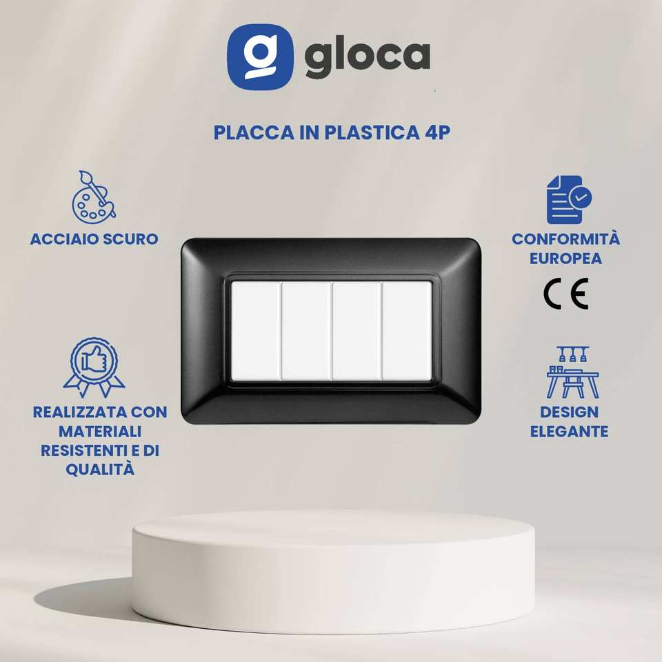 Ensemble de plaques de prise murale en plastique compatible Gloca Matix, 3 pièces, acier foncé, 4 prises, usage résidentiel